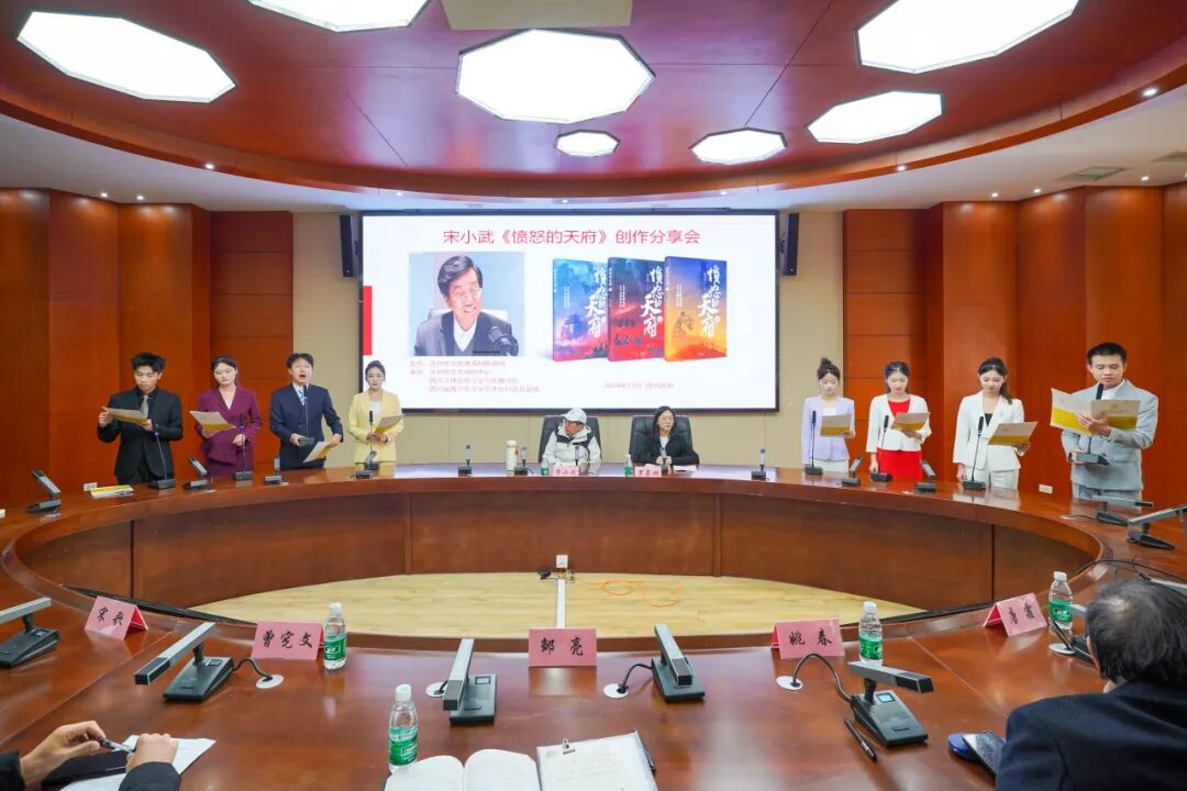 11月26日,由巴山作家群研究院与达州市文艺创作中心联合承办的一级编剧宋小武长篇小说《愤怒的天府》创作分享会在学校弘德楼二楼会议室举行。达州市文艺创作中心主任罗嘉琳主持分享会,巴山作家群研究院主任曾宪文致辞。基地专家姚春等教师以及星光文学社成员、文学爱好者到场参加。